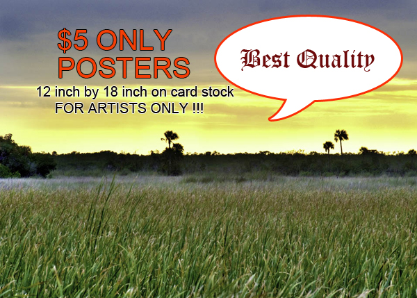 We will print your artwork on 12″x18″ heavy card stock using beautiful vivid color ink and materials. This is a great way to make a $20 or $25 sale to every person you meet. This is not a poster printed on plain paper that you roll up or fold. This is a heavy quality poster product that will proudly reflect the quality of your artwork.